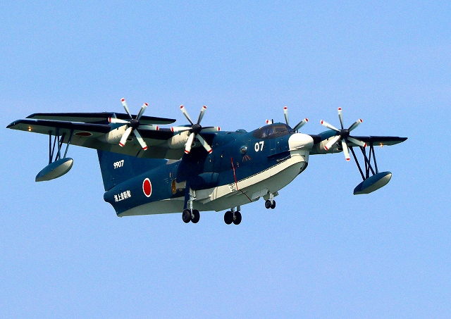 海上自衛隊 US-2 救難飛行艇(岩国基地)、9907番機が着陸 |