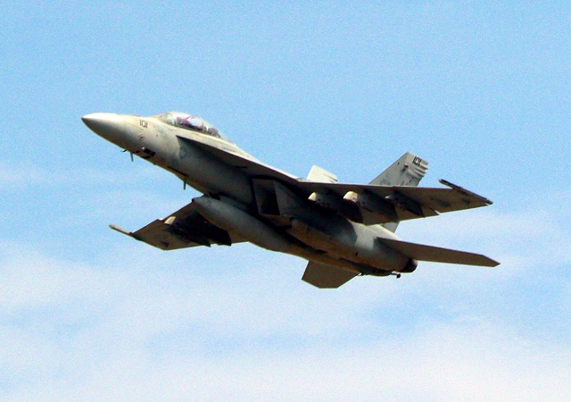 米海軍艦載機 F/A-18F スーパーホーネット 戦闘攻撃機(岩国基地)、NF、101番機が離陸 |