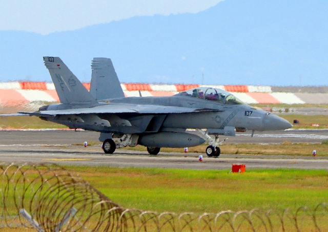 米海軍艦載機 F/A-18F スーパーホーネット 戦闘攻撃機(岩国基地)、NF、107番機 |