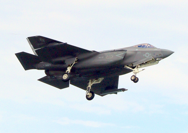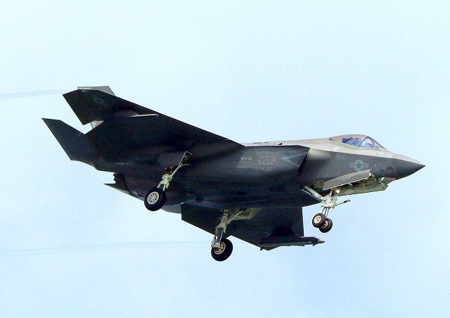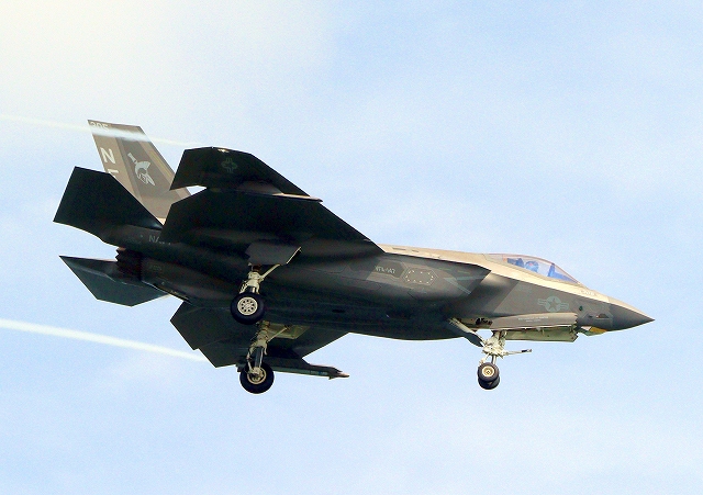 米海軍艦載機 F-35C ライトニングⅡ ステルス戦闘機戦闘機(岩国基地)、NF、305番機が旋回 |