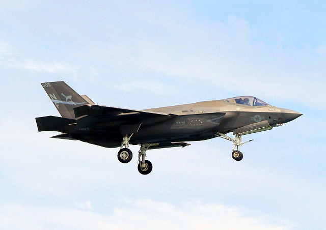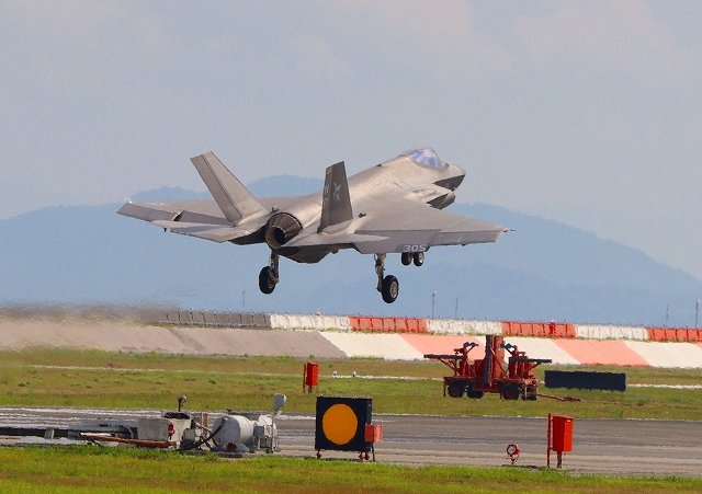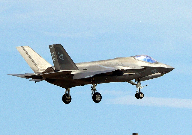 米海軍艦載機 F-35C ライトニングⅡ ステルス戦闘機戦闘機(岩国基地)、NF、305番機が着陸 |