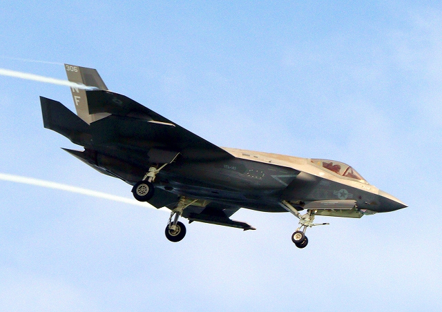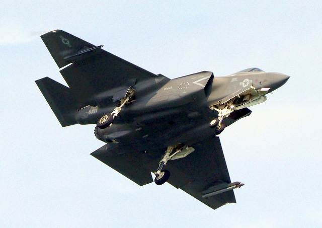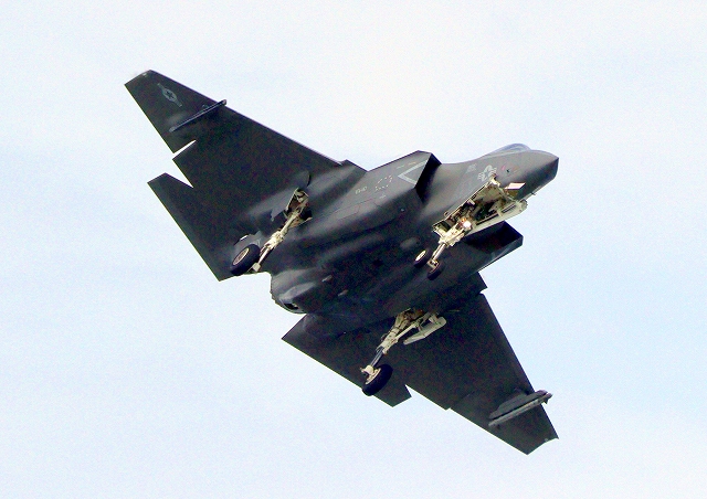 米海軍艦載機 F-35C ライトニングⅡ ステルス戦闘機(岩国基地)、NF、306番機が旋回 |