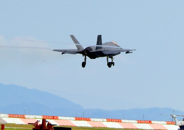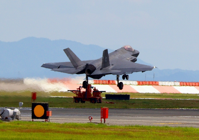 米海軍艦載機 F-35C ライトニングⅡ ステルス戦闘機(岩国基地)、NF、306番機が着陸 |
