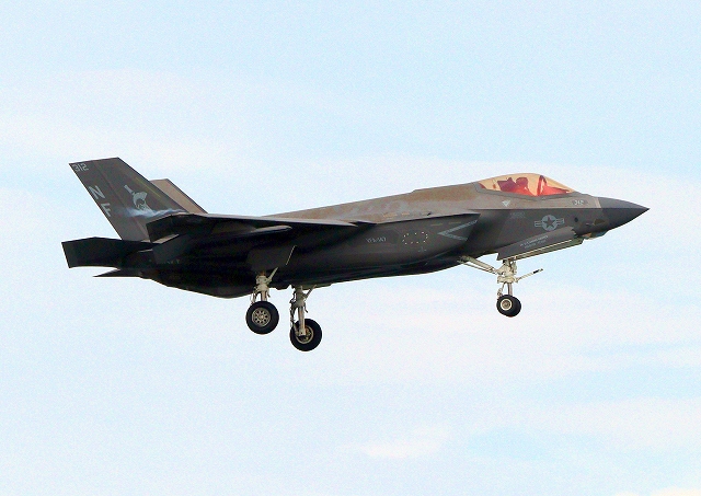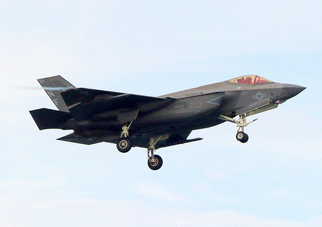 米海軍艦載機 F-35C ライトニングⅡ ステルス戦闘機(岩国基地)、NF、311番機が着陸 |