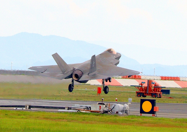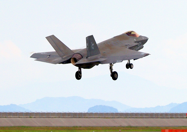 米海軍艦載機 F-35C ライトニングⅡ ステルス戦闘機(岩国基地)、NF、312番機が着陸 |