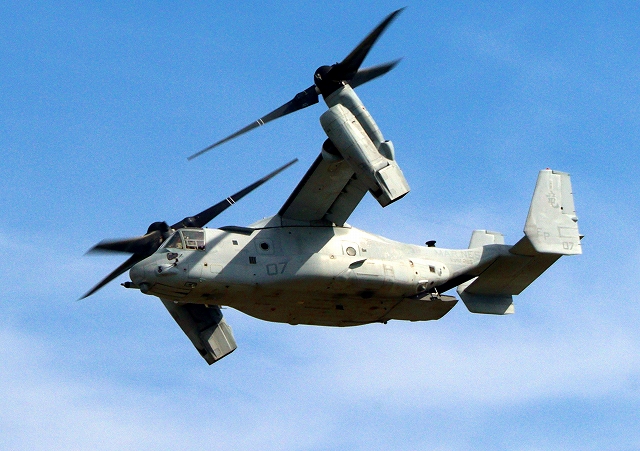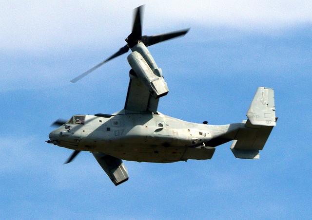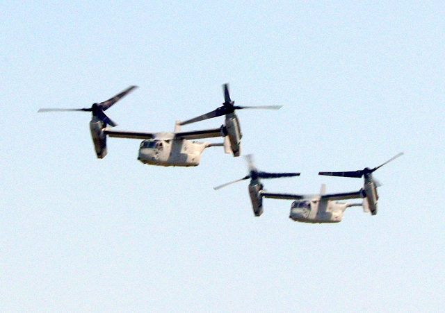 米海兵隊 MV-22B オスプレイ(普天間基地)、「竜」、EP、07番機、06番機が離陸 |