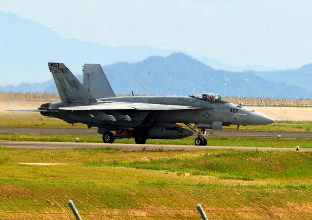 米海軍艦載機 F/A-18E スーパーホーネット 戦闘攻撃機(岩国基地)、NF、407番機 |