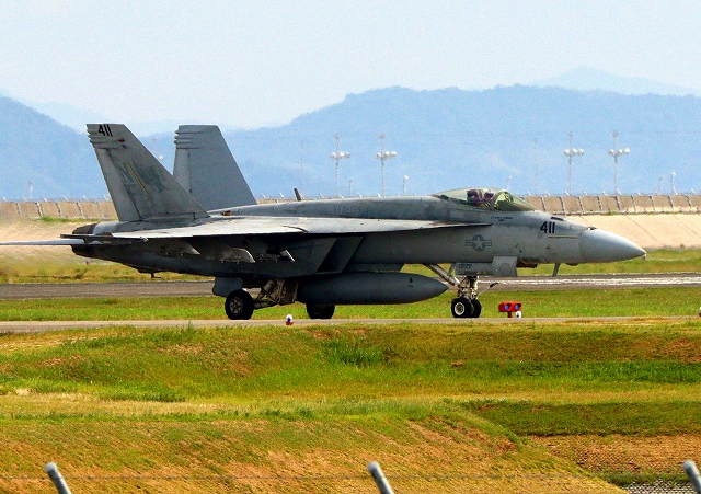 米海軍艦載機 F/A-18E スーパーホーネット 戦闘攻撃機(岩国基地)、NF、411番機 |