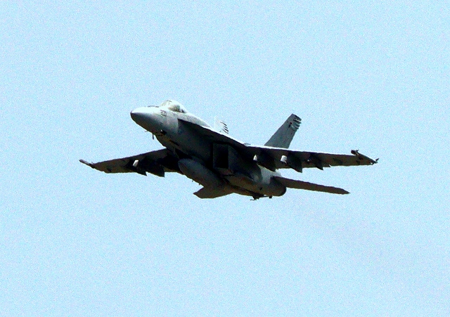 米海軍艦載機 F/A-18E スーパーホーネット 戦闘攻撃機(岩国基地)、NF、202番機が離陸 |