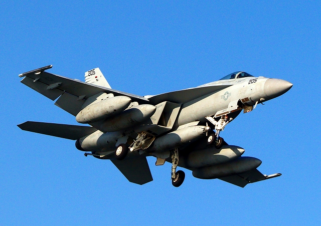米海軍艦載機 F/A-18E スーパーホーネット 戦闘攻撃機(岩国基地)、NF、205番機 |