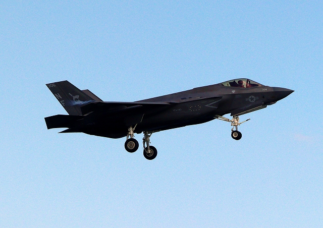 米海軍艦載機 F-35C ライトニングⅡ ステルス戦闘機(岩国基地)、NF、304番機が旋回(2周目) |