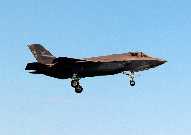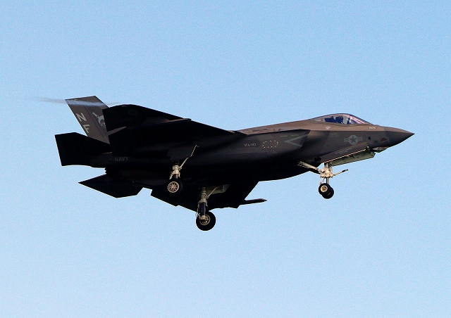 米海軍艦載機 F-35C ライトニングⅡ ステルス戦闘機(岩国基地)、NF、304番機が旋回(5周目) |