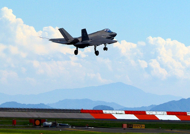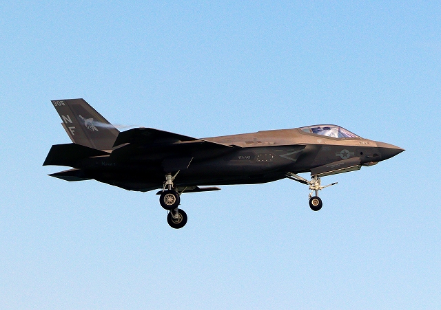 米海軍艦載機 F-35C ライトニングⅡ ステルス戦闘機(岩国基地)、NF、305番機が旋回(5周目) |