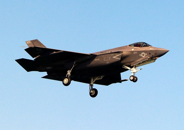 米海軍艦載機 F-35C ライトニングⅡ ステル機戦闘機(岩国基地)、NF、307番機が旋回(5周目) |