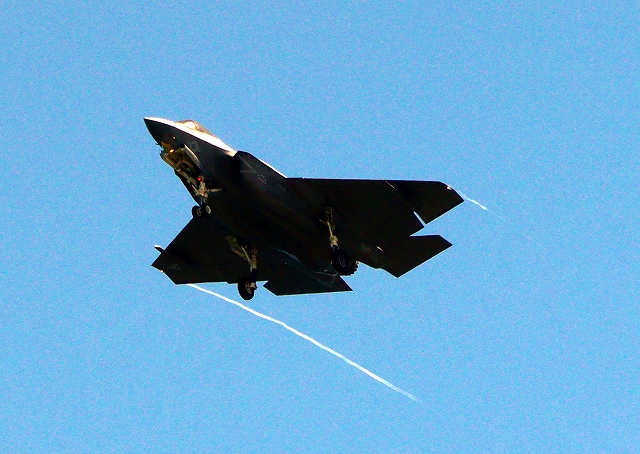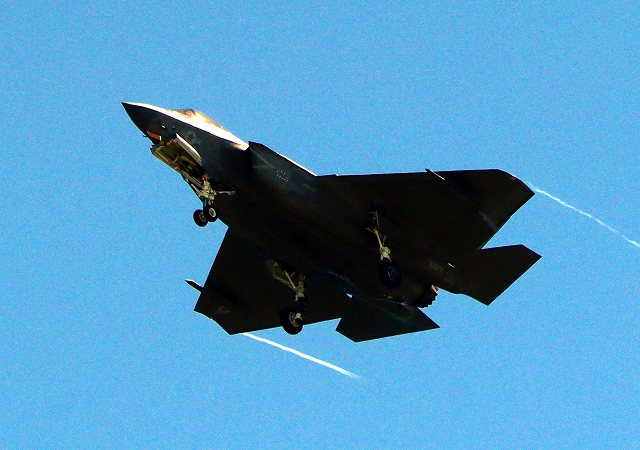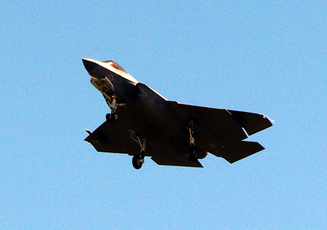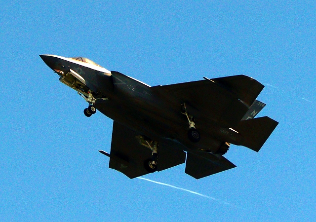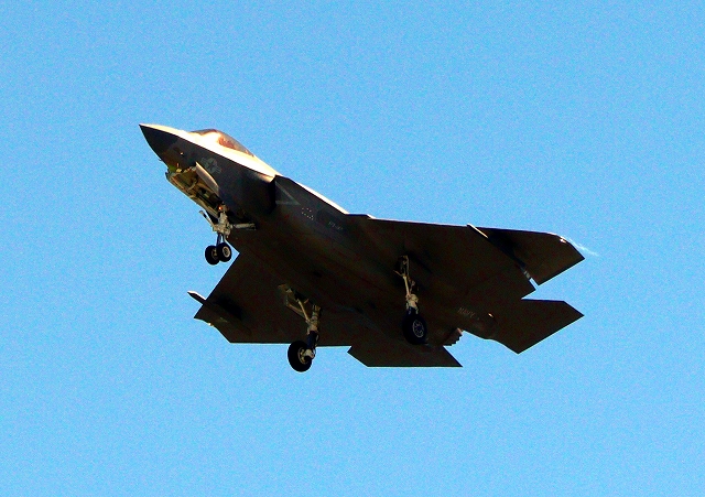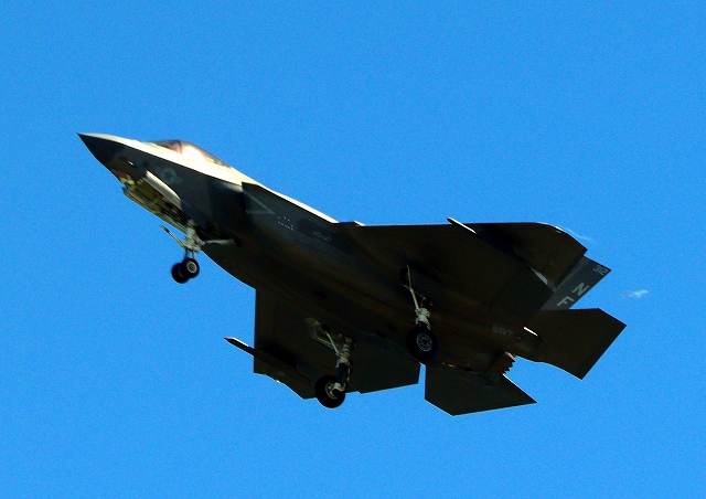 米海軍艦載機 F-35C ライトニングⅡ ステルス戦闘機(岩国基地)、NF、306番機が旋回(3周目) |