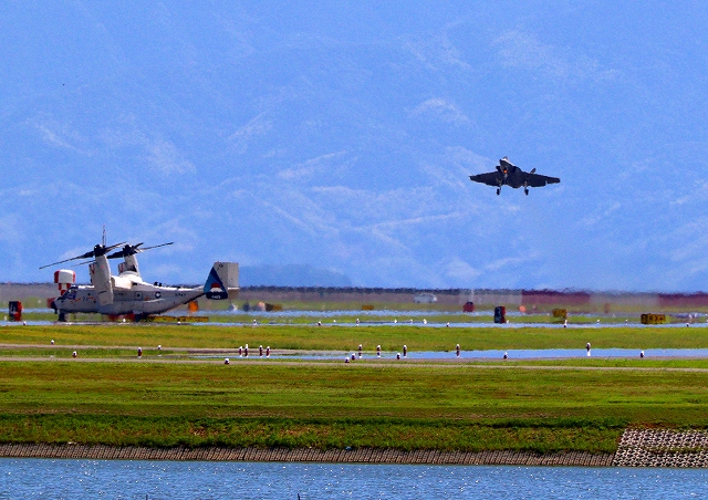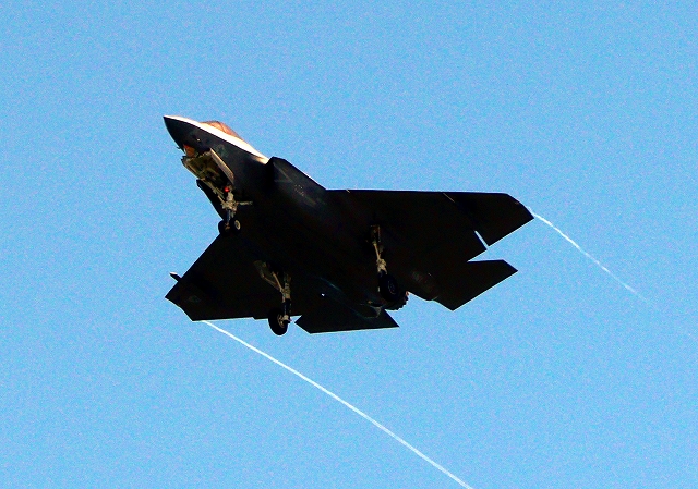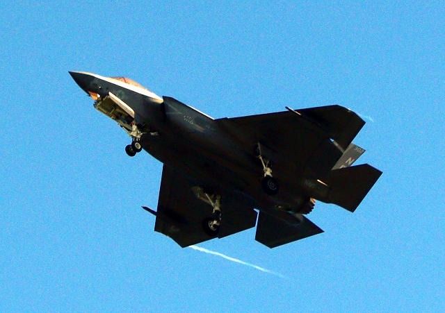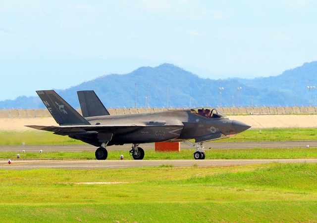 米海軍艦載機 F-35C ライトニングⅡ ステルス戦闘機(岩国基地)、NF、302番機が旋回(5周目) |