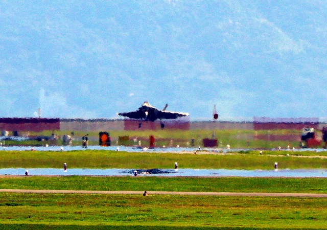米海軍艦載機 F-35C ライトニングⅡ ステルス戦闘機(岩国基地)、NF、306番機が着陸 |