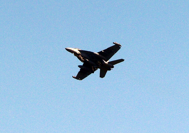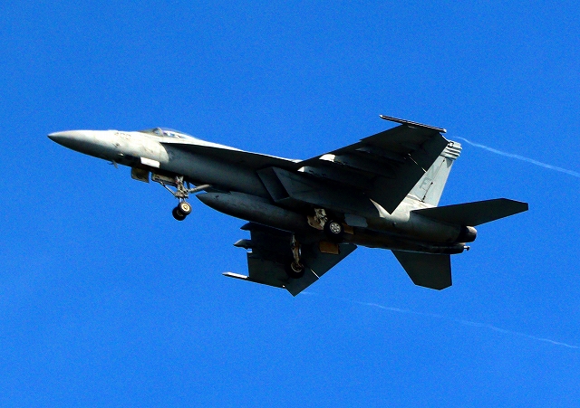 米海軍艦載機 F/A-18E スーパーホーネット 戦闘攻撃機(岩国基地)、NF、400番機が離陸 |