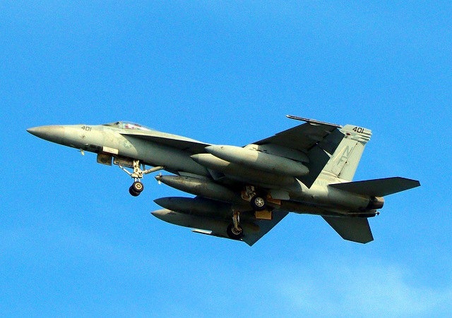 米海軍艦載機 F/A-18E スーパーホーネット 戦闘攻撃機(岩国基地)、NF、401番機(5周目) |