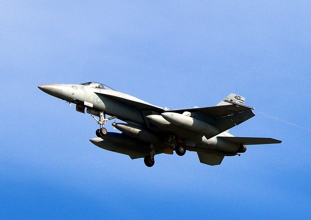 米海軍艦載機 F/A-18E スーパーホーネット 戦闘攻撃機(岩国基地)、NF、401番機(6周目) |