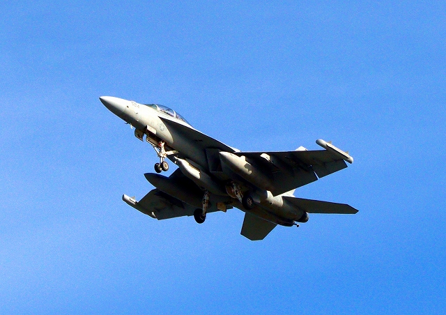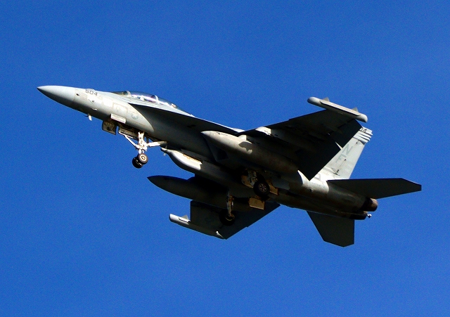 米海軍艦載機 EA-18G グラウラー 電子戦機戦闘攻撃機(岩国基地)、NF、504番機が旋回 |