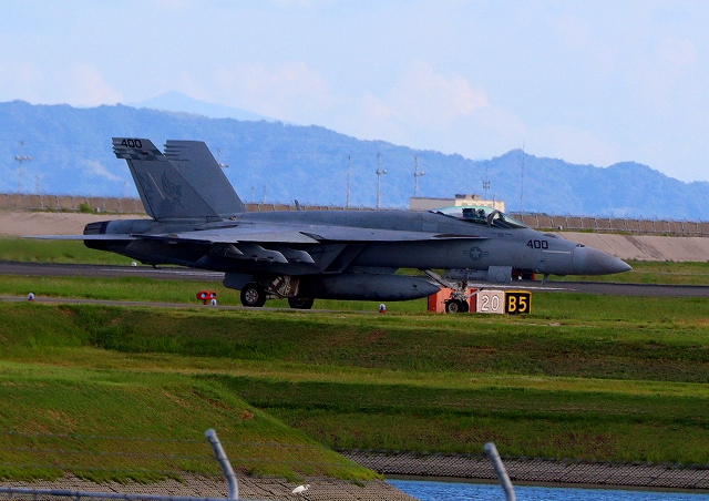 米海軍艦載機 F/A-18E スーパーホーネット 戦闘攻撃機(岩国基地)、NF、400番機 |
