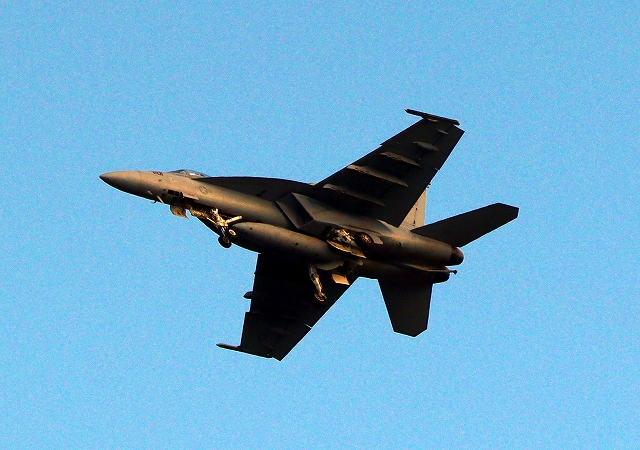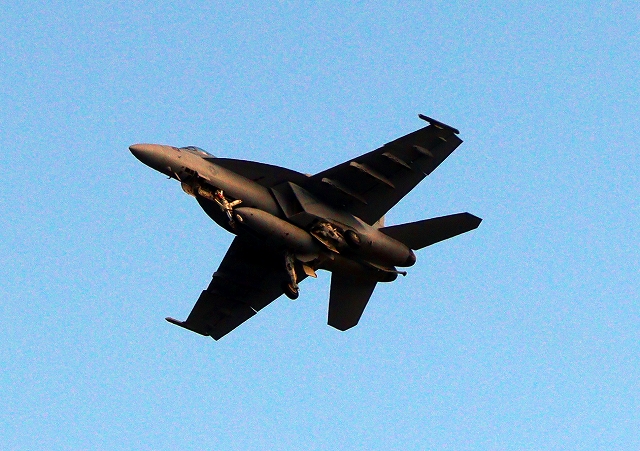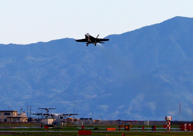 米海軍艦載機 F/A-18E スーパーホーネット 戦闘攻撃機(岩国基地)、NF、400番機がまた離陸 |