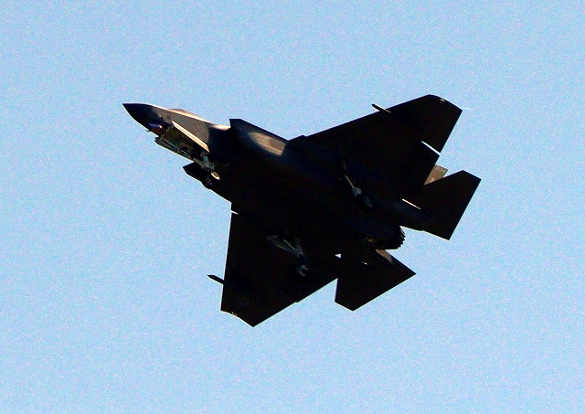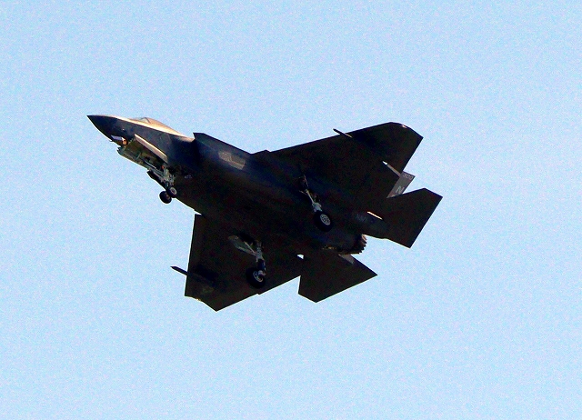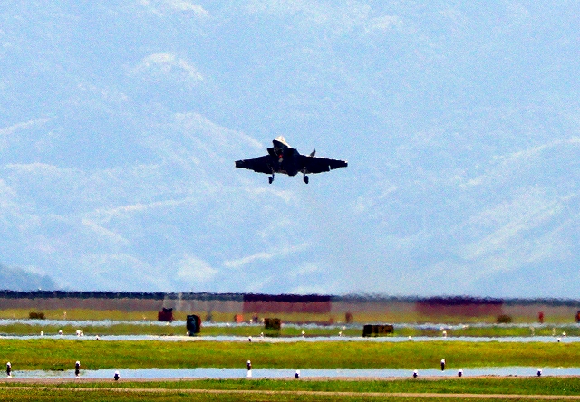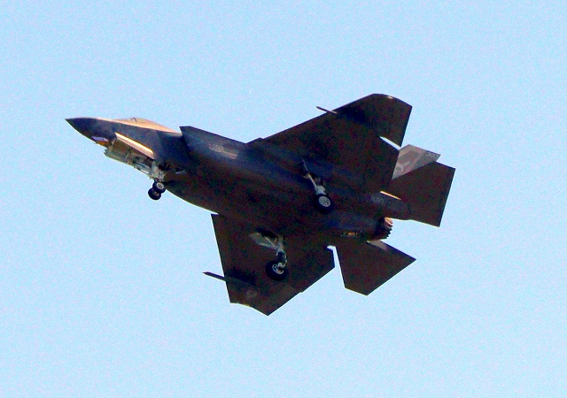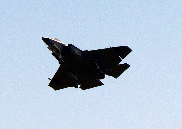 米海軍艦載機 F-35C ライトニングⅡ ステルス戦闘機(岩国基地)、NF、304番機が旋回タッチアンド・ゴーして旋回(3周目) |