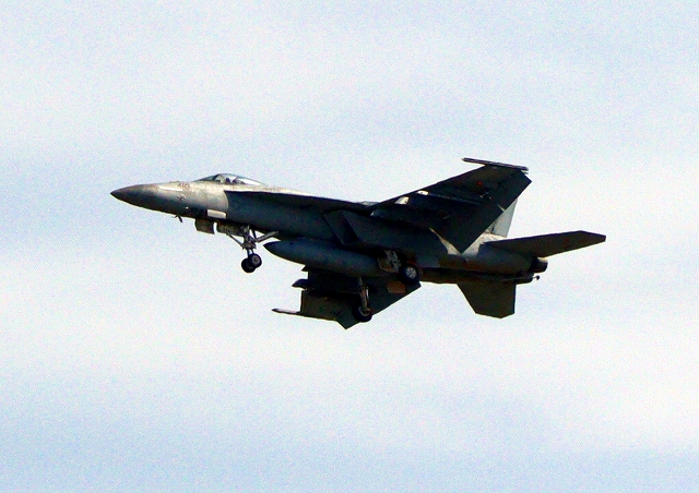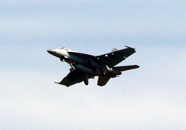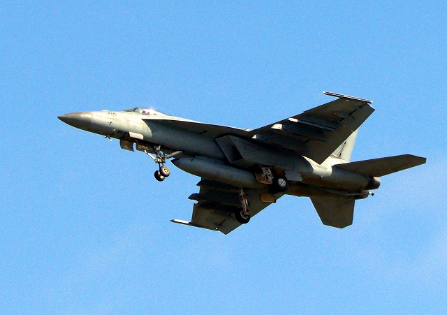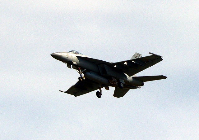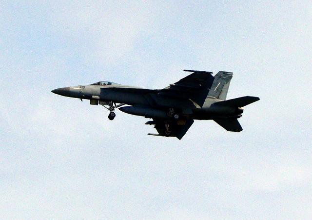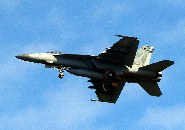 米海軍艦載機 F/A-18E スーパーホーネット 戦闘攻撃機(岩国基地)、NF、410番機が離陸 |