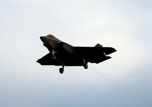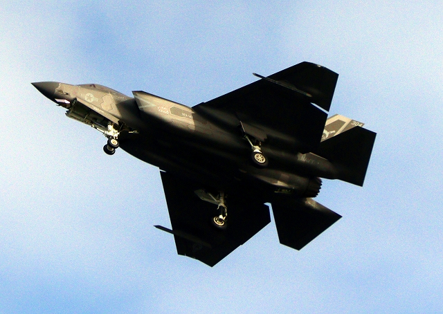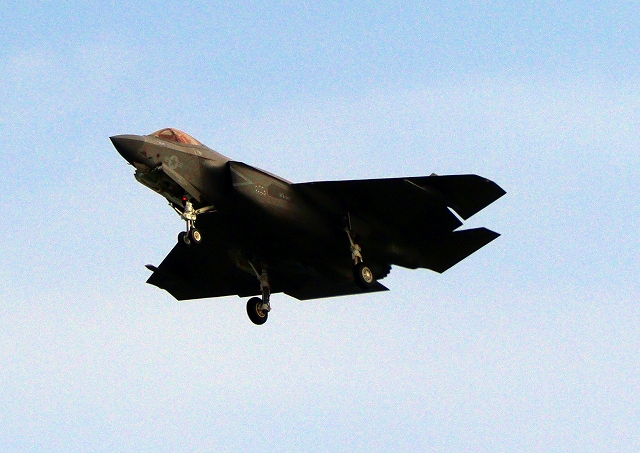 米海軍艦載機 F-35C ライトニングⅡ ステルス戦闘機(岩国基地)、NF、304番機がタッチアンド・ゴーして旋回(5周目) |