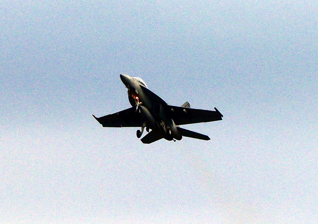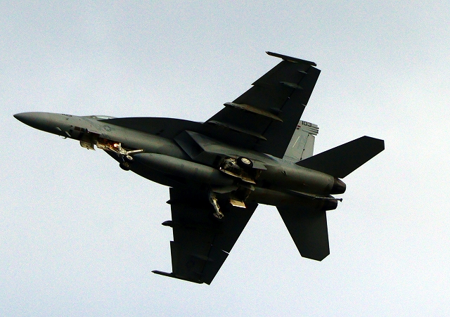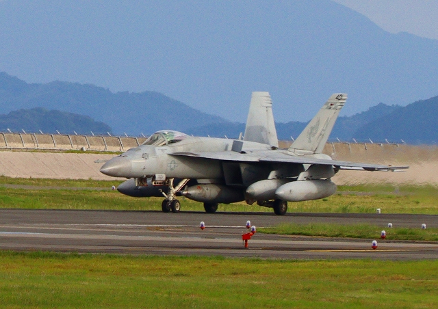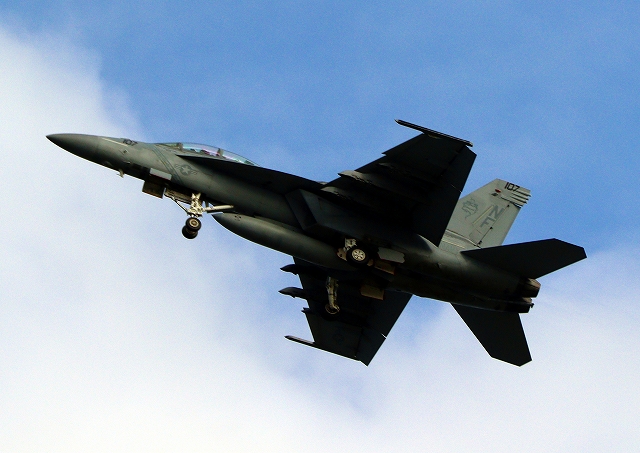 米海軍艦載機 F/A-18F スーパーホーネット 戦闘攻撃機(岩国基地)、NF、103番機が離陸 |