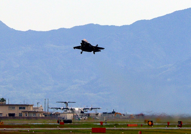米海兵隊 F-35B ライトニングⅡ ステルス戦闘機(岩国基地)、CF、02番機が離陸 |