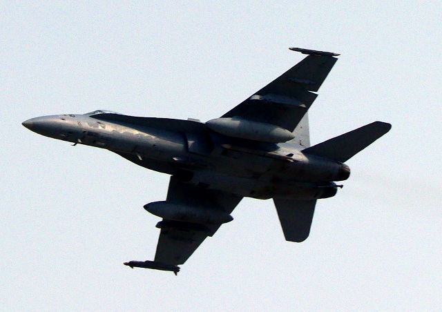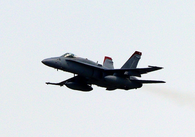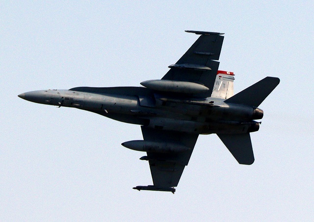 米海兵隊 F/A-18C ホーネット 戦闘攻撃機(岩国基地)、WT、10番機が離陸 |