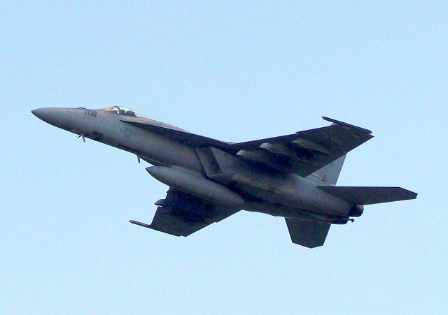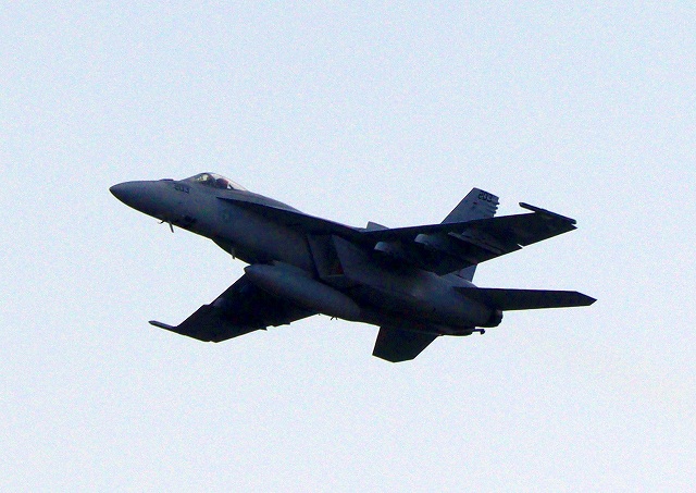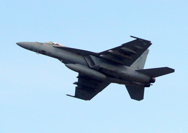 米海軍艦載機 F/A-18E スーパーホーネット 戦闘攻撃機(岩国基地)、NF、203番機が離陸 |