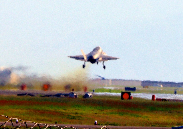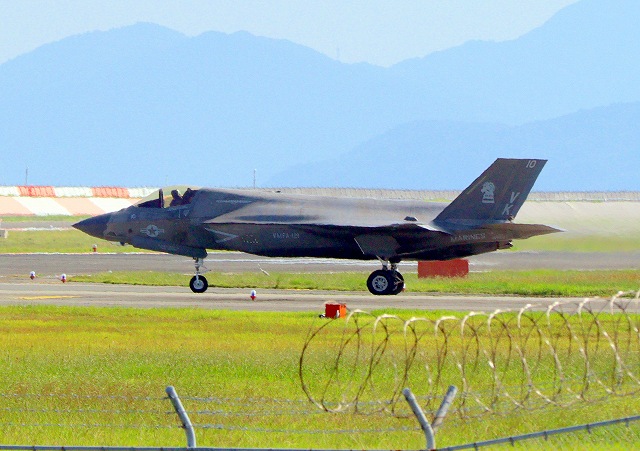 米海兵隊 F-35B ライトニングⅡ ステルス戦闘機(岩国基地)、VK、10番機が離陸 |