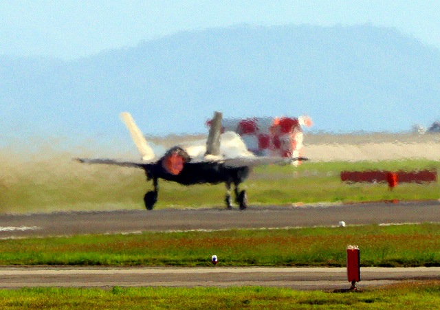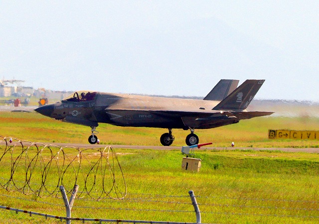 米海兵隊 F-35B ライトニングⅡ ステルス戦闘機(岩国基地)、VK、01番機が離陸 |