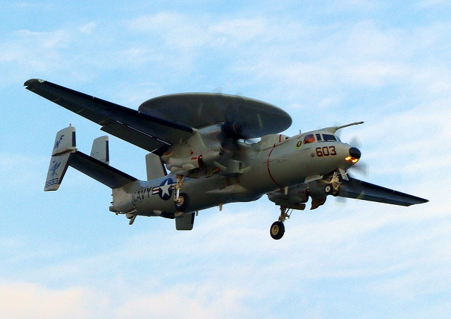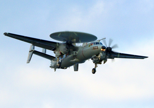 米海軍艦載機 E-2D アドヴァンスド・ホークアイ 早期警戒機(岩国基地)、603番機が帰還 |