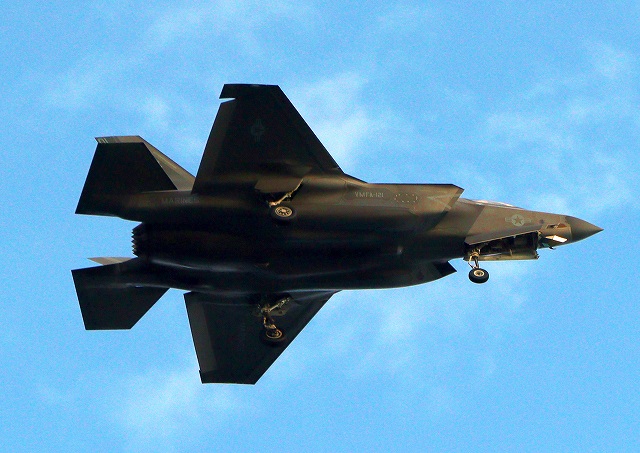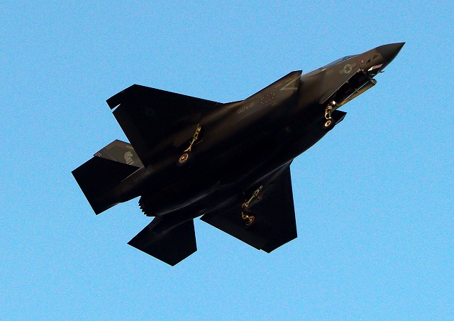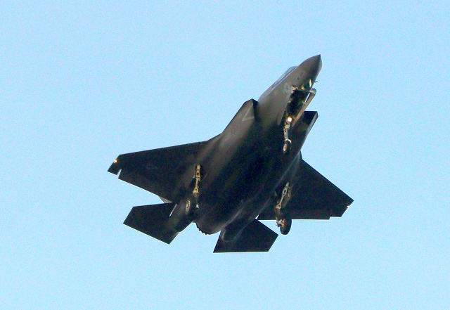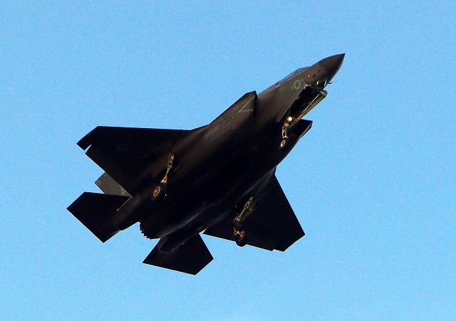 米海兵隊 F-35B ライトニングⅡ ステルス戦闘機(岩国基地)、VK、01番機が旋回 |