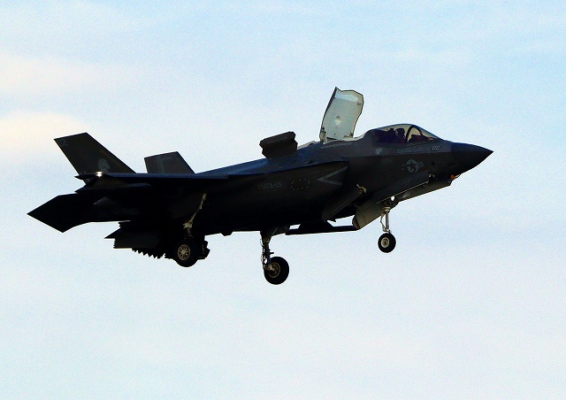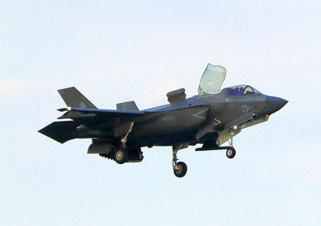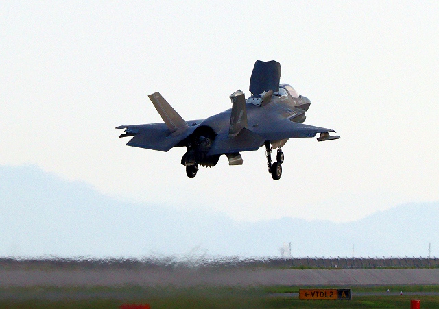 米海兵隊 F-35B ライトニングⅡ ステルス戦闘機(岩国基地)、VK、02番機が着陸 |