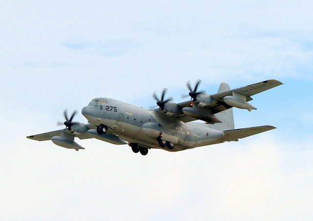 米海兵隊 KC-130J 空中給油機 スーパーハーキュリーズ(米本土海兵隊基地)、QB 0275番機 |
