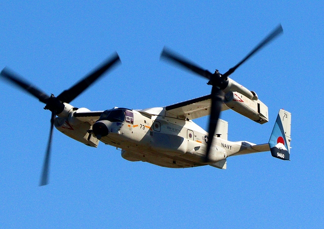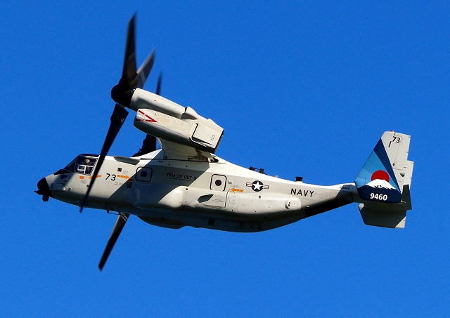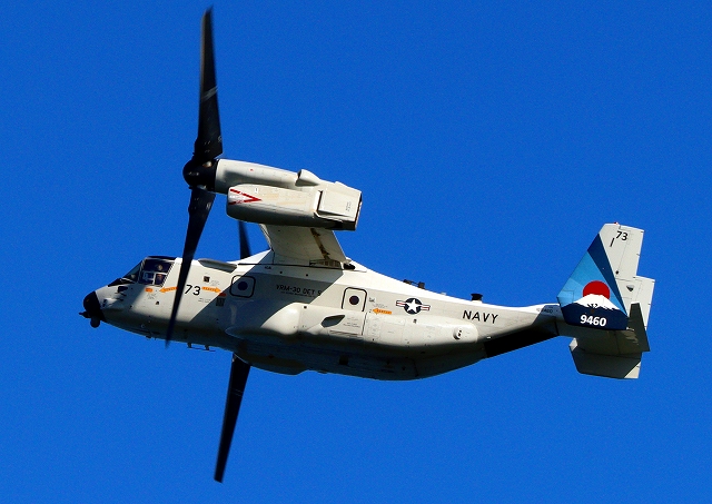 米海軍艦載機 CMV-22B オスプレイ(岩国基地)、73-9460番機が旋回(6周目) |