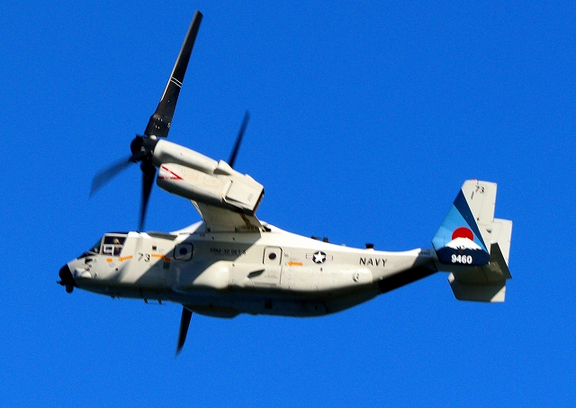 米海軍艦載機 CMV-22B オスプレイ(岩国基地)、73-9460番機が旋回(7周目) |