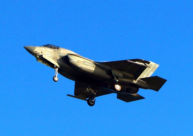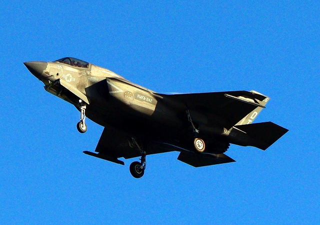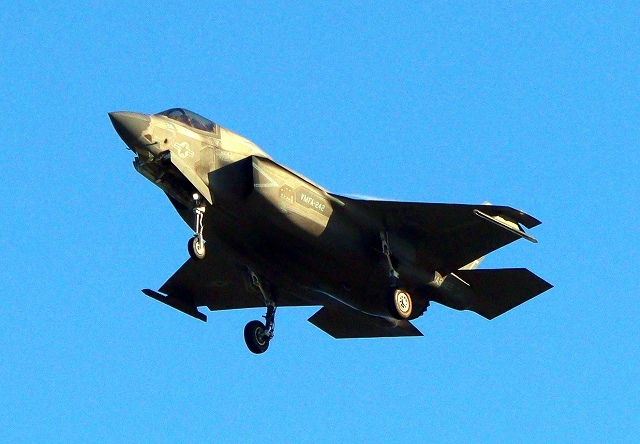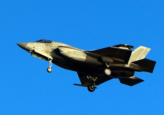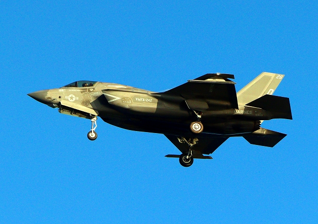 米海兵隊 F-35B ライトニングⅡ ステルス戦闘機(岩国基地)、DT、26番機が旋回(4周目) |