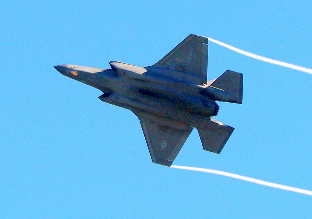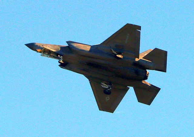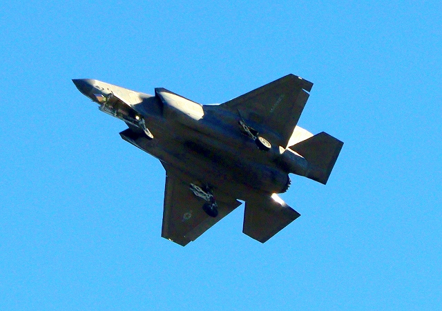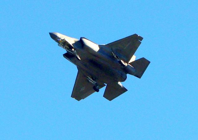 米海兵隊 F-35B ライトニングⅡ ステルス戦闘機(岩国基地)、VK、11番機が旋回(2周目) |