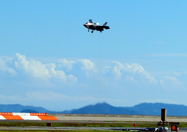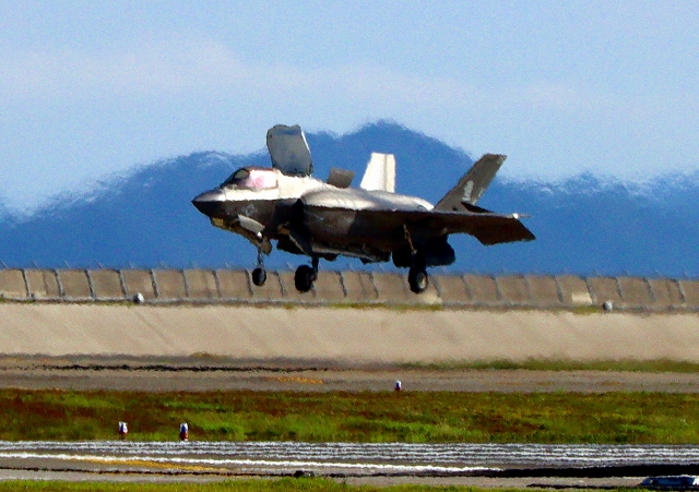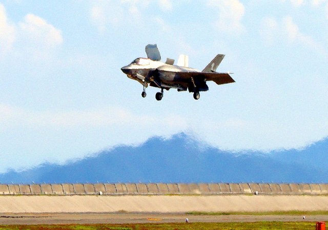 米海兵隊 F-35B ライトニングⅡ ステルス戦闘機(岩国基地)、VK、05番機が帰還、旋回 |
