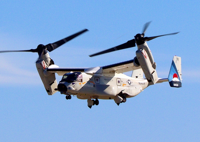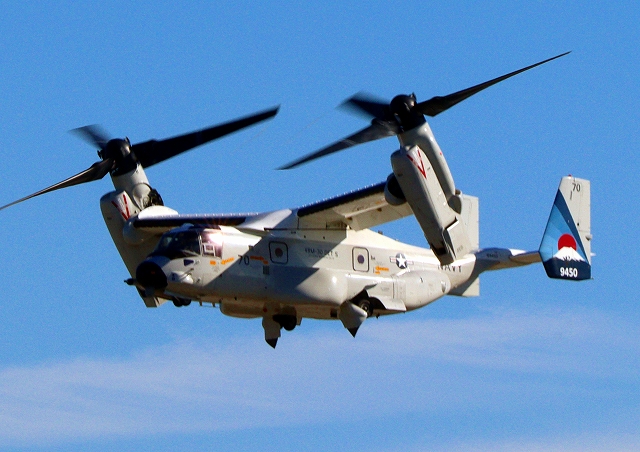 米海軍艦載機 CMV-22B オスプレイ(岩国基地)、70-9450番機が離陸 |