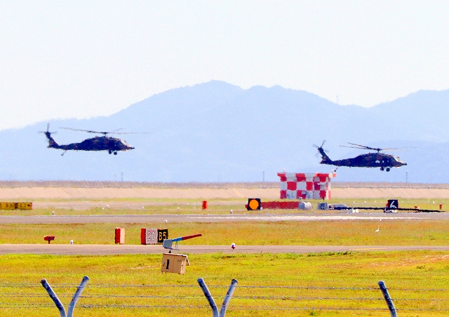 航空自衛隊 UH-60J 救難ヘリ、2機が飛来、着陸 |