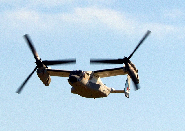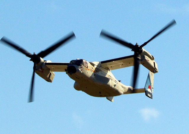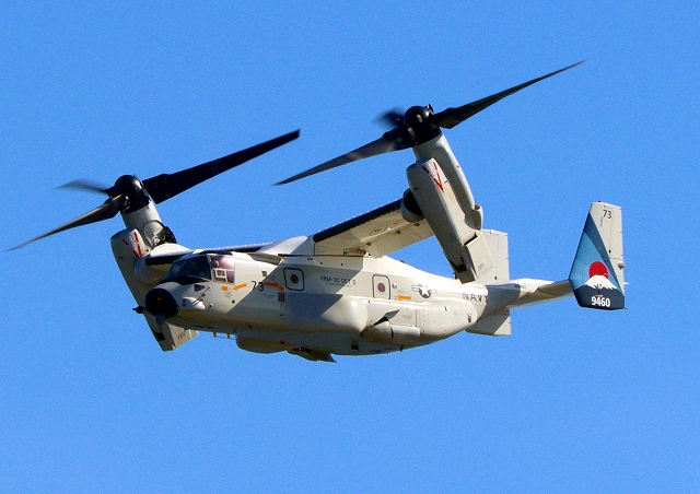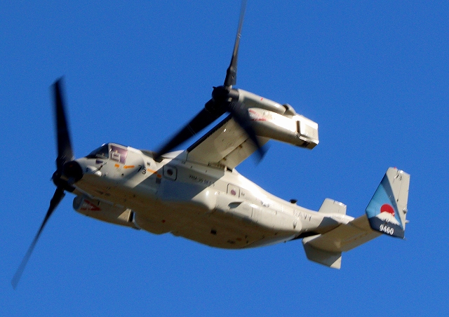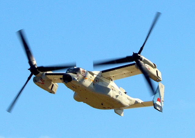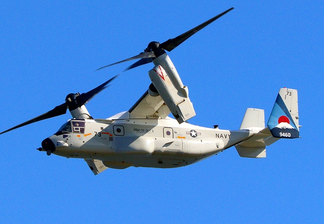 米海軍艦載機 CMV-22B オスプレイ(岩国基地)、73-9460番機、固定翼モードで旋回 |