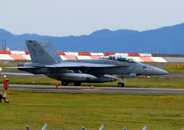 米海軍艦載機 F/A-18F スーパーホーネット 戦闘攻撃機(岩国基地)、NF、114番機 |