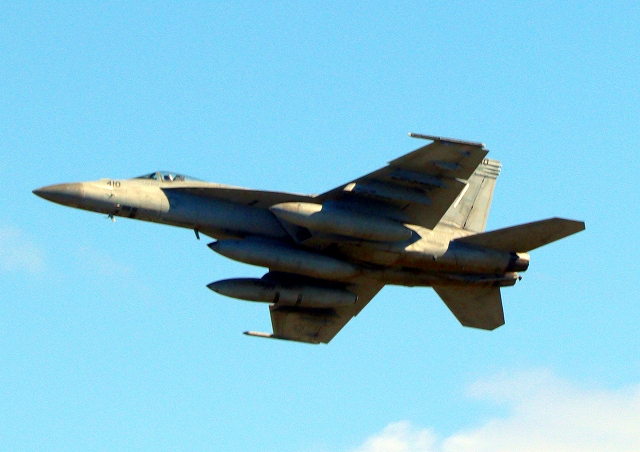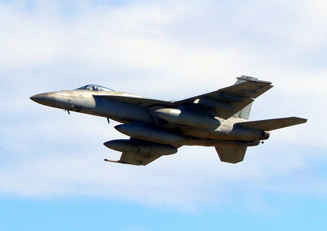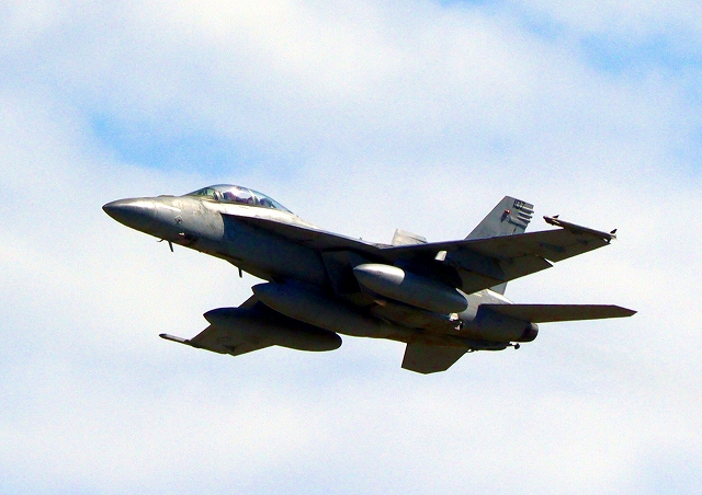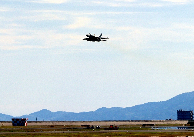 米海軍艦載機 F/A-18E スーパーホーネット 戦闘攻撃機(岩国基地)、NF、410番機が離陸 |